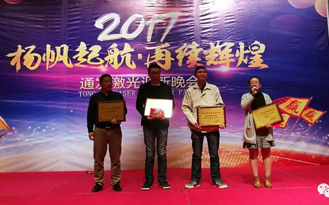 當晚的貢獻獎,莫過于優秀銷售團隊的獎項了,在過去的2016年里,通發激光昆山辦事處、浙江辦事處、成都辦事處在各自服務的區域均向公司交出了滿意答卷;還有我們的售后部門,依托為客戶售后的良好基礎,也向公司證明了不俗的銷售成績。