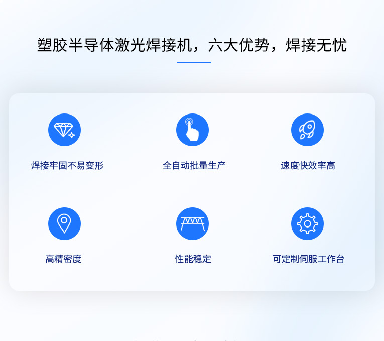加工頭:激光頭可實現(xiàn)±60度旋轉(zhuǎn),效率高,可實現(xiàn)產(chǎn)品多角度焊接,適用性強(qiáng)。